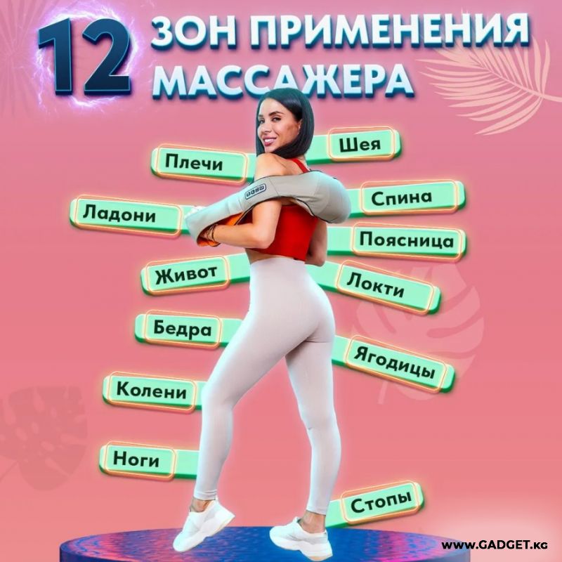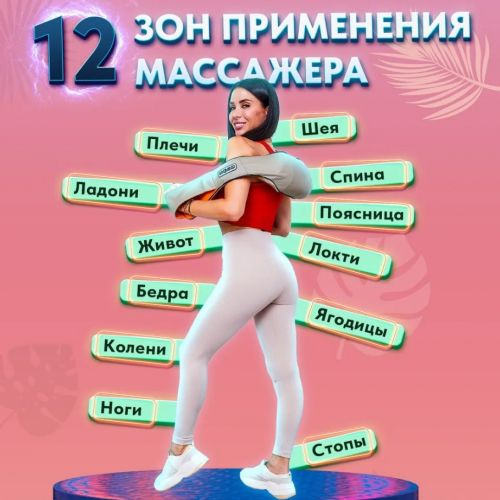 Массажёр применяется для массажа не только шейно-плечевой области, но и других частей тела: спины, поясницы, бедер, икр, стоп.