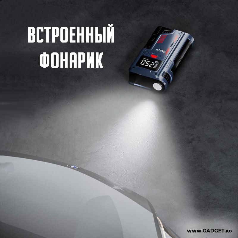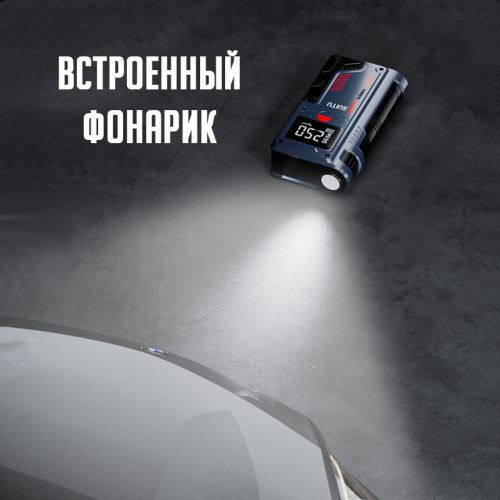 Теперь Автомобильный компрессор может не только накачать колесо, но, так же сможет запустить ваш автомобиль, в случае если вдруг у вас сядет аккумулятор. А все потому, что в нем встроено зарядно-пусковое устройство. Автолюбители знают не понаслышке что такое севший аккумулятор, особенно если вы оказались в такой ситуации за городом, или в горах, а ближайший друг с проводами для прикуривания не берет трубку, спит или занят. Ну а о штатной ситуации, когда в прекрасное зимнее утро ваш автомобиль не завелся из за слабого АКБ, вообще можно не говорить. В данном гаджете установлен мощный аккумулятор на 6000 mah, который поможет запустить ваш автомобиль без труда. А специальные провода с зажимами, которые идут в комплекте, легко подключатся к любому автомобильному аккумулятору.