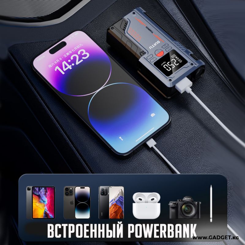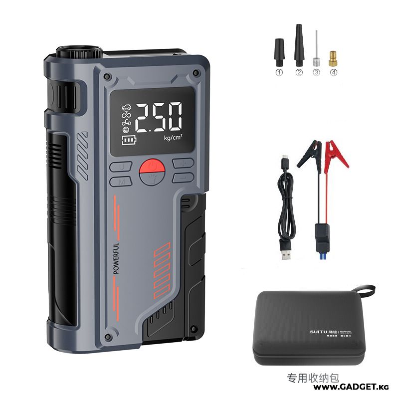 Пусковое зарядное устройство Jump Starter + компрессор для накачки колес Power Machine T700 8000 Mah