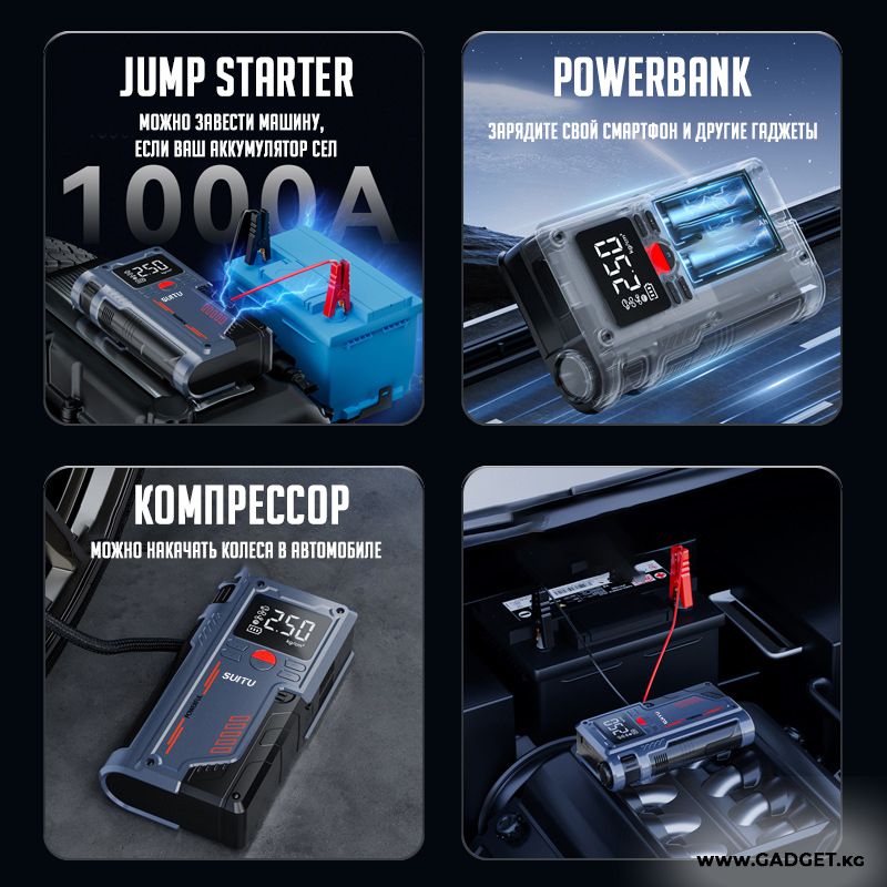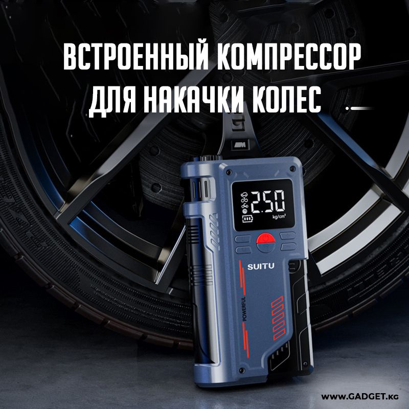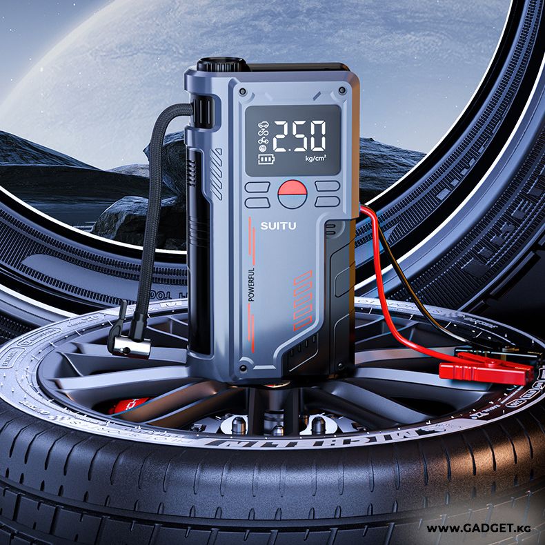 Представляем вашему вниманию универсальный гаджет 3в1 для вашего автомобиля. С помощью него вы сможете накачать колеса на автомобиле, и завести машину, в случае если аккумулятор вдруг сел.