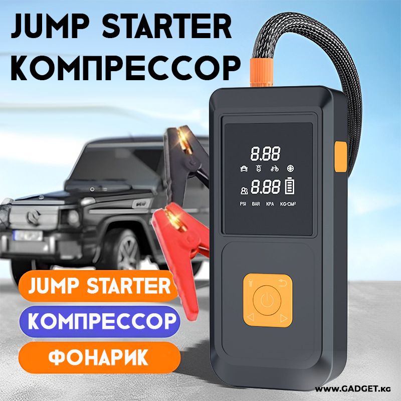 Jump Starter Пусковое зарядное устройство + Компрессор для накачки колес 3в1 X900
