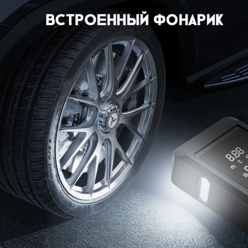 Теперь Автомобильный компрессор может не только накачать колесо, но, так же сможет запустить ваш автомобиль, в случае если вдруг у вас сядет аккумулятор. А все потому, что в нем встроено зарядно-пусковое устройство. Автолюбители знают не понаслышке что такое севший аккумулятор, особенно если вы оказались в такой ситуации за городом, или в горах, а ближайший друг с проводами для прикуривания не берет трубку, спит или занят. Ну а о штатной ситуации, когда в прекрасное зимнее утро ваш автомобиль не завелся из за слабого АКБ, вообще можно не говорить. В данном гаджете установлен мощный аккумулятор на 10000 mah, который поможет запустить ваш автомобиль без труда. А специальные провода с зажимами, которые идут в комплекте, легко подключатся к любому автомобильному аккумулятору.