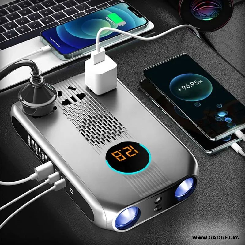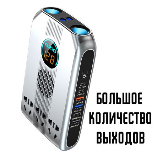 Обеспечивает стабильный выход, безопасность от поражения электрическим током и надежность. Имеет LED дисплей с мониторингом напряжения заряда аккумулятора автомобиля в режиме реального времени. Оснащен двойным отверстием для прикуривателя, более удобным в использовании.