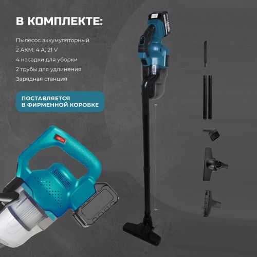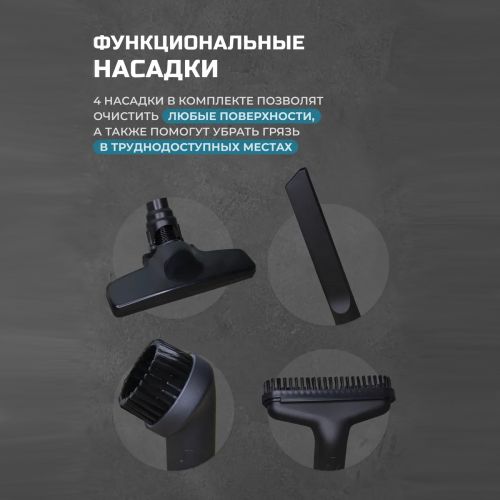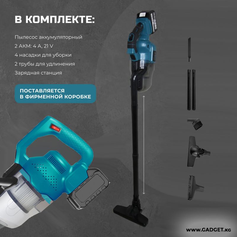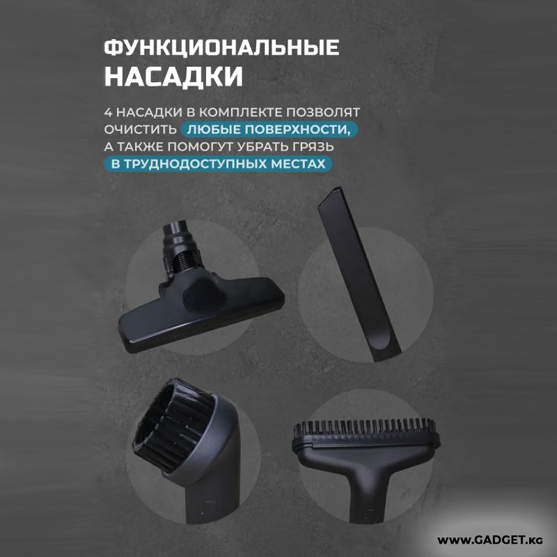 С 4 насадками для различных поверхностей (автомобильные сиденья, полики, ковры, мягкая мебель, универсальная для ковров/полов) и мощностью 21 В, этот пылесос обеспечивает глубокую и тщательную уборку. Механическое управление и составная труба для всасывания добавляют удобства использования.