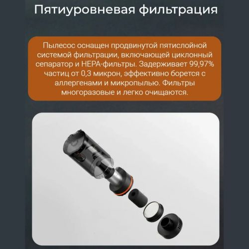 Mijia Car Vacuum Cleaner — это компактный и мощный автомобильный пылесос, который станет незаменимым помощником в поддержании чистоты как в салоне автомобиля, так и в домашних условиях. Благодаря высокой мощности всасывания и многоступенчатой системе фильтрации, устройство эффективно удаляет пыль и мусор, предотвращая их повторное попадание в воздух. Встроенный аккумулятор обеспечивает продолжительное время работы, что делает пылесос удобным и практичным в использовании.