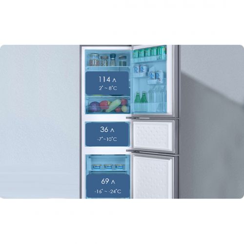 С холодильником Viomi yunmi у вас будете более чем достаточно места для хранения фруктов, овощей, мяса, рыбы, яиц и других продуктов. Внутреннее пространство холодильника разделено на 3 секции (114 л, 35 л, 69 л), в каждой из которых поддерживается соответствующий температурный режим. Теперь каждый ингредиент для очередного блюда будет на своем месте.