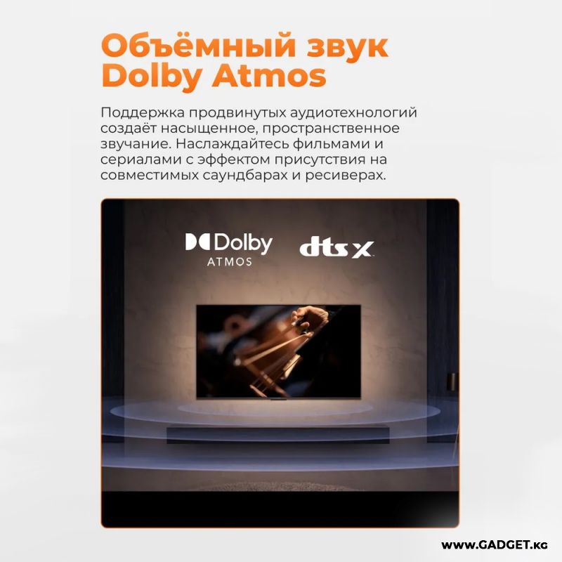 Премиальные аудиотехнологии Dolby Atmos и DTS:X воспроизводят панорамное объёмное звучание с виртуализацией высоты, передавая каждую деталь звука и создавая эффект полного погружения в происходящее на экране.