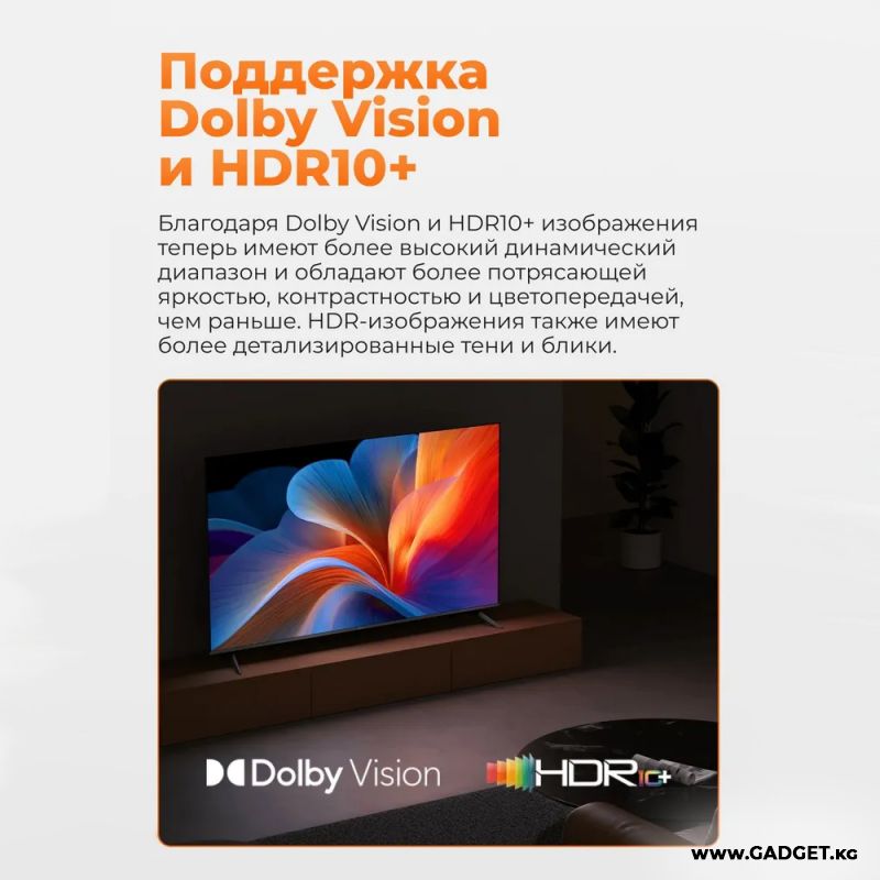 Инновационные технологии Dolby Vision и HDR10+ обеспечивают широкий динамический диапазон, повышают контраст и насыщенность цветов, создавая впечатляющий визуальный эффект и реалистичную картинку.