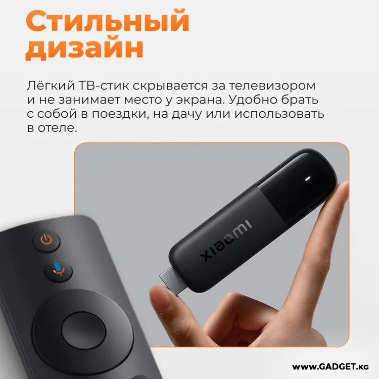 Тонкий, легкий и эргономичный корпус с закругленными углами удобно держать в руке и легко переносить, превращая Xiaomi TV Stick 4K в идеальное портативное решение для любого телевизора.