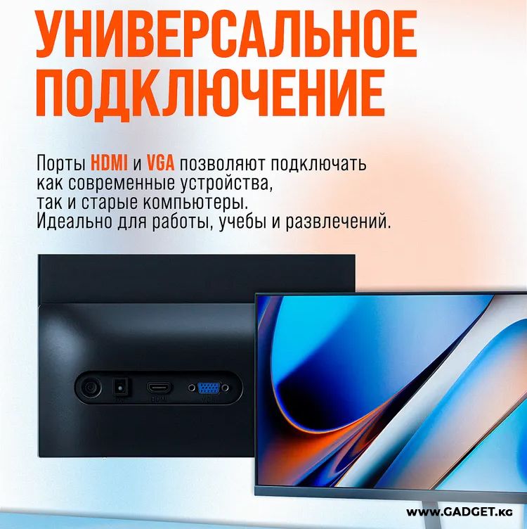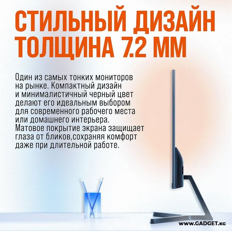 Монитор оснащен портами HDMI и VGA, что позволяет подключать как современные устройства, так и старые компьютеры. Благодаря разрешению Full HD (1920x1080) вы получаете четкую картинку для работы, учебы или отдыха. Толщина всего 7.2 мм делает его одним из самых компактных мониторов на рынке.
