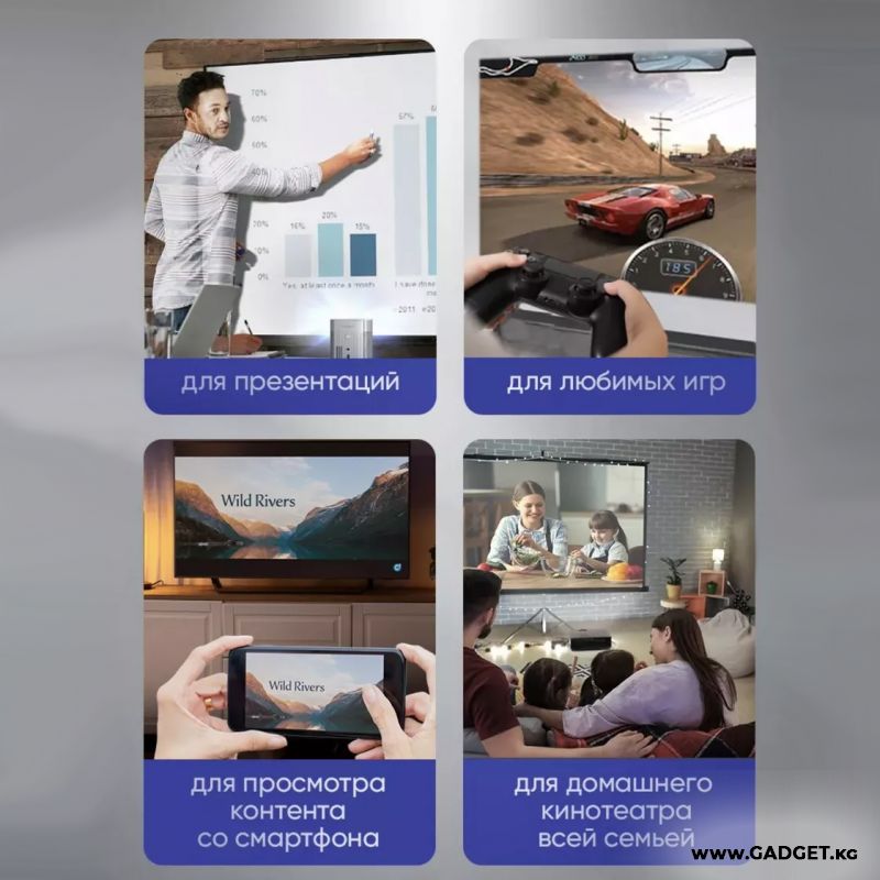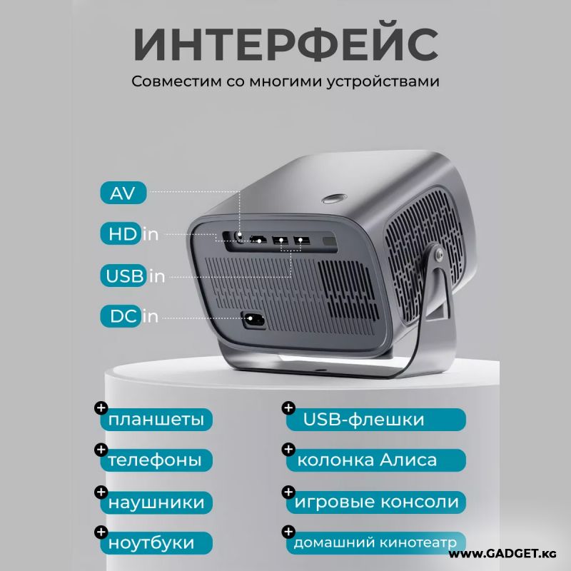 Мини проектор оснащен передовой технологией повтора экрана (Mirascreen), и Bluetooth что позволяет вам смотреть любимые фильмы, сериалы, мультфильмы, играть в игры и просматривать фото прямо с вашего смартфона или планшета. Благодаря операционной системе Android и поддержке Wi-Fi, у вас будет доступ к множеству приложений, видеохостингов и онлайн-кинотеатров.