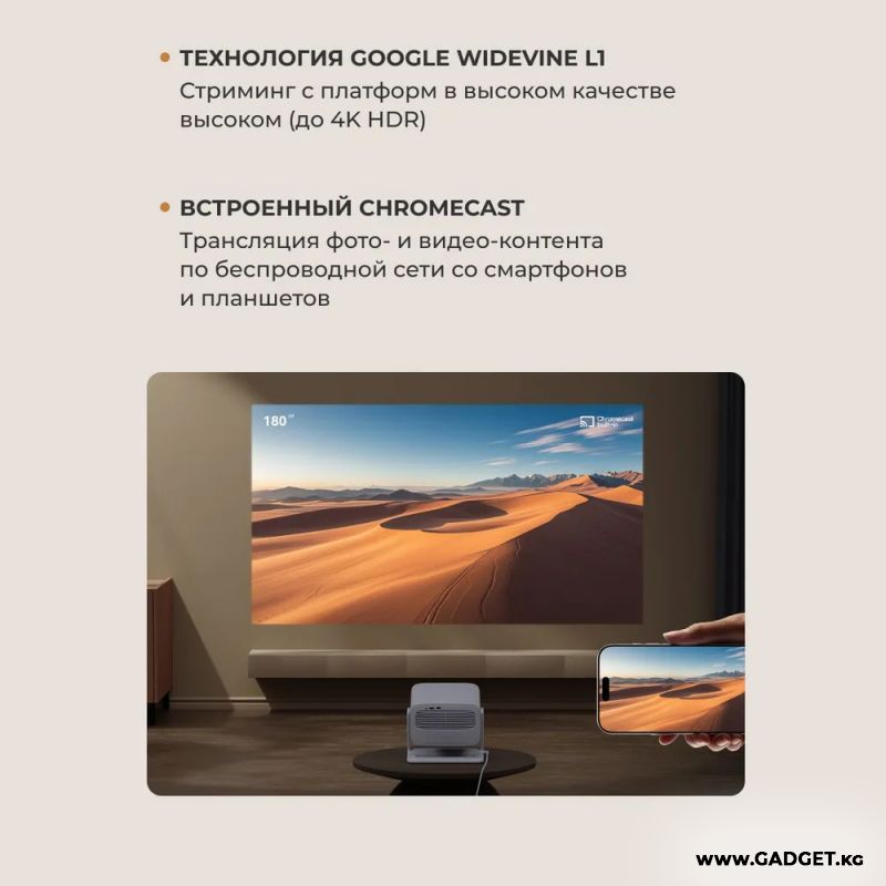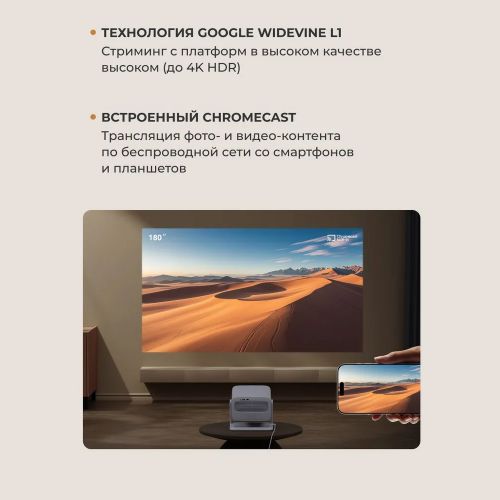 Проектор поддерживает двухдиапазонный Wi-Fi 2.4/5 ГГц и Bluetooth 5.0, что гарантирует стабильное подключение как потокового видео, так и игр. Благодаря встроенному Chromecast можно беспроводно транслировать игры, видео или презентации с телефона или ноутбука одним нажатием. В сочетании с игровым режимом это делает Wanbo Vali 1 универсальным устройством для развлечений и работы.