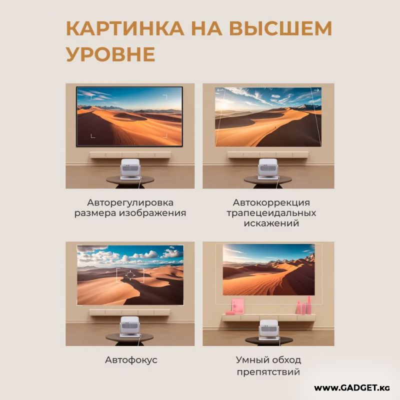 Проектор поддерживает воспроизведение в формате Full HD (1920×1080) с возможностью проигрывать 4K-видео с понижением масштаба. Яркость в 900 ANSI люменов обеспечивает четкое и яркое изображение, позволяя комфортно смотреть видео и сериалы как днем, так и ночью. Благодаря контрастности 3000:1, картинка выглядит насыщенной, с глубокими черными и четкими деталями в темных сценах. Проекционное расстояние составляет от 1,2 до 3,9 метра, что позволяет получить изображение диагональю от 40 до 130 дюймов.