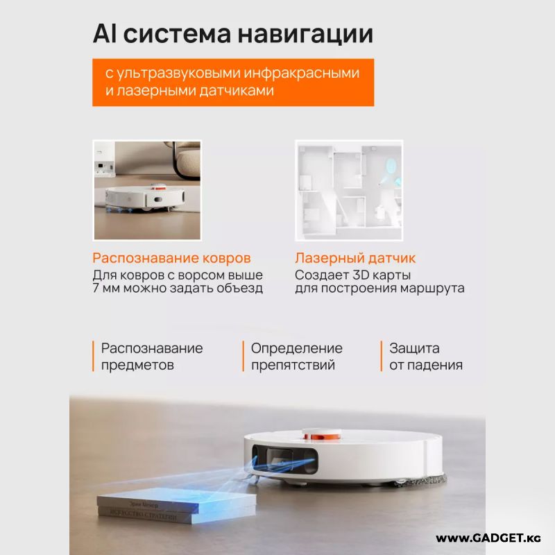 В процессе уборки робот-пылесос находит множество различных предметов на полу, встроенная камера с алгоритмом искусственного интеллекта распознает эти объекты и выстраивает оптимальный маршрут уборки.