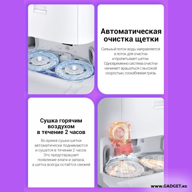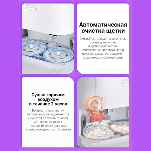 Когда уборка завершена док-станция еще два часа сушит салфетки горячим воздухом для того, чтобы предотвратить развитие плесени, бактерий и появления неприятного запаха.
