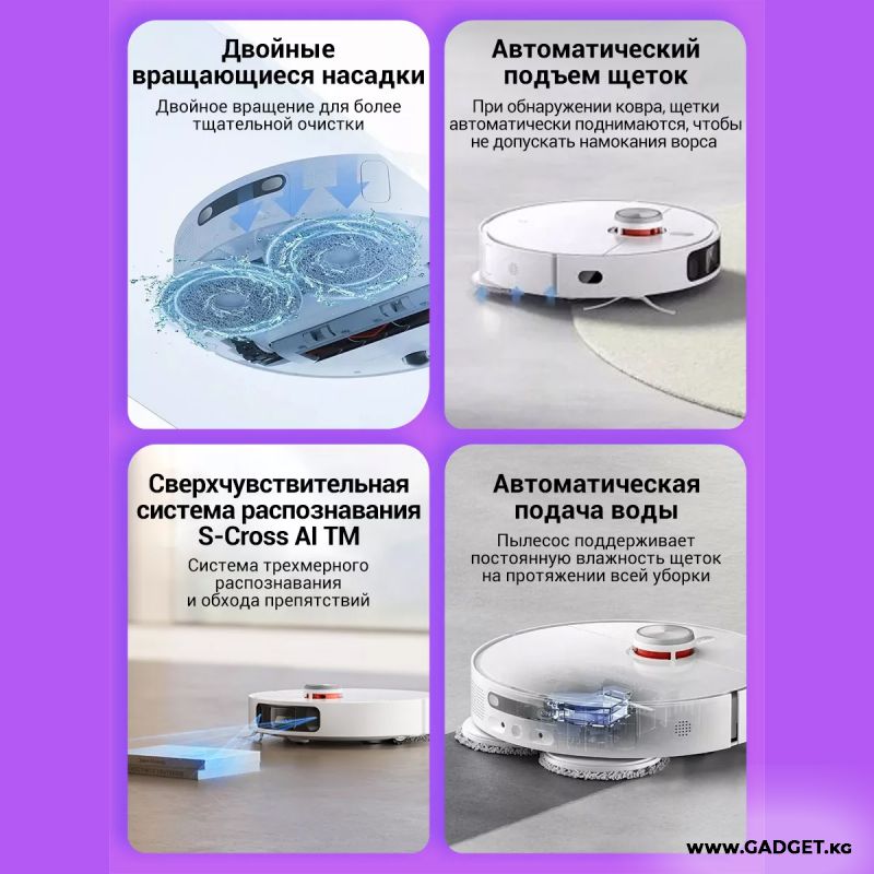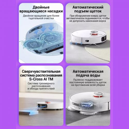 Невероятно мощный пылесос, который справляется с мусором в глубоких щелях, моет пол, стирает тряпки, самостоятельно чистится и сушится после уборки. Система распознавания предметов позволяет роботу гибко объезжать любые предметы и качественно убирать пространство вокруг них. Xiaomi Mi Omni Robot 1S может быть подключен напрямую к водопроводу и канализации, а также добавлять в воду моющее средство.