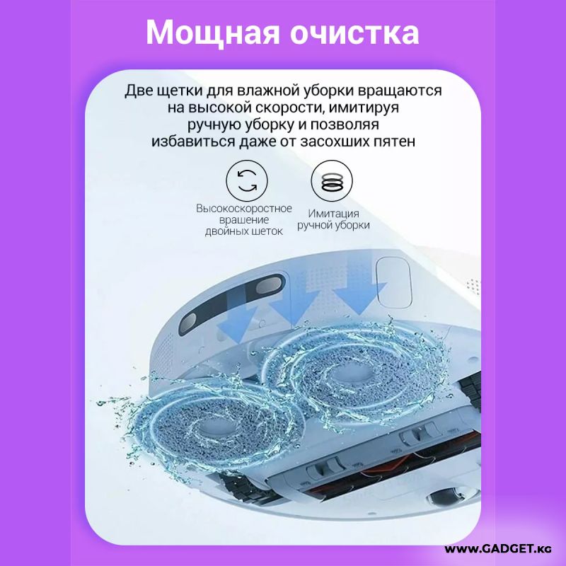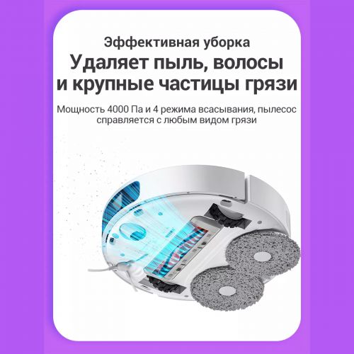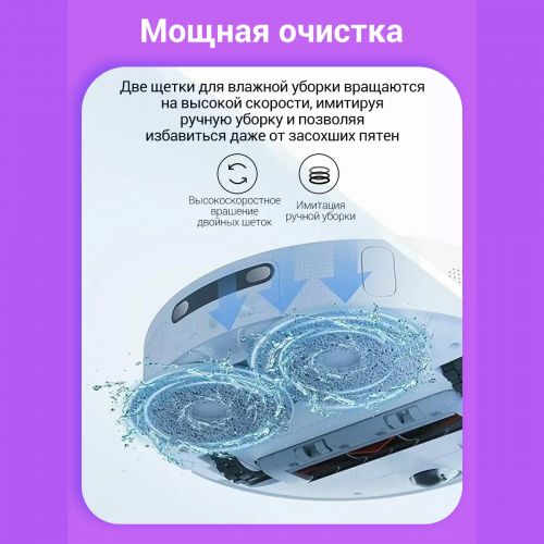 Для мытья пола в Xiaomi Mi Omni Robot 1S используются два чистящих диска, которые придавливаются к полу и вращаются со скоростью 180 оборотов в минуту эффективно оттирая все бытовые загрязнения. Три режима влажной уборки позволяют подобрать оптимальный уровень влажности для паркета, ламината, кафеля или линолеума.