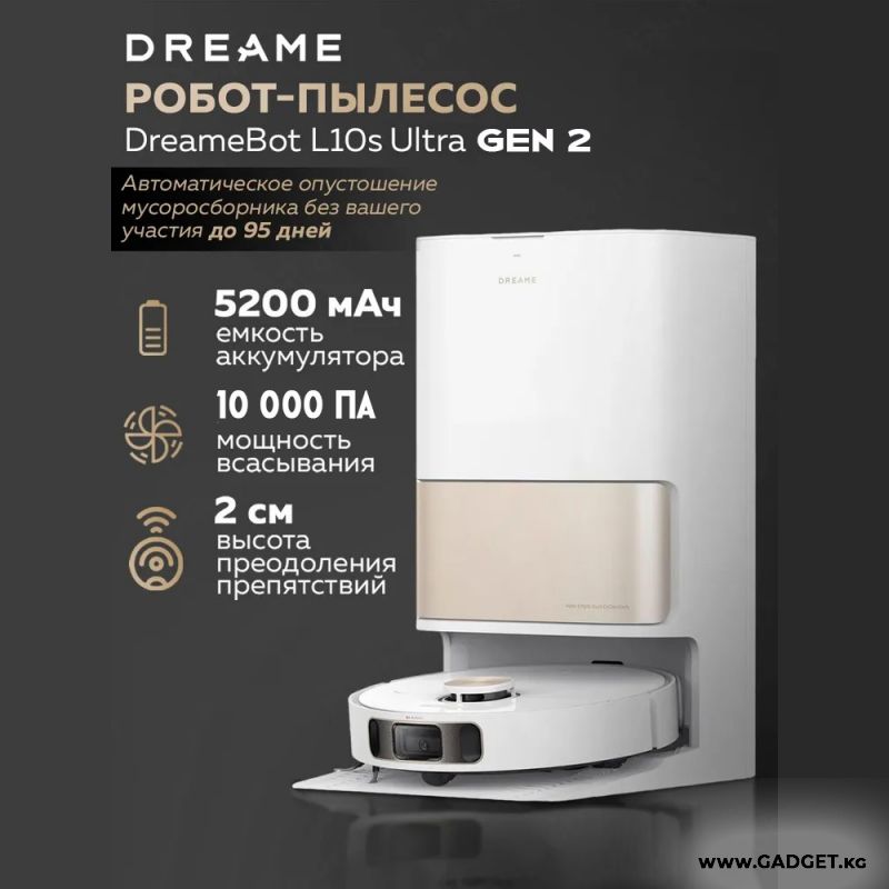 Робот-пылесос L10s Ultra Gen 2 - второго поколения, относится к (2025-му модельному году) от компании Dreame. Робот мойка DreameBot L10 s Ultra Gen 2 с активной камерой и искусственным интеллектом способен видеть и обходить сюрпризы от домашних животных. База самообслуживания Dreame Bot L10s Ultra Gen2 отвечает за полный цикл самоочистки робота. Пылесос робот L10s Ultra Gen2 Dreame получил эффективный модуль влажной уборки с ротационными дисками и выдвижным мопом. Вращающиеся диски отлично оттирают от пола даже присохшие пятна, а убирая вдоль стен робот выдвигает моющий диск до самого плинтуса. Робот мойщик поднимает моющие мопы на ковре, и увеличивает мощность всасывания, а съезжая на твердый пол – снова прижимает их к полу, продолжая пылесосить с мойкой. Также модель демонстрирует превосходную мощность всасывания – 10000 Pa. За построение точных карт отвечает передняя камера, LiDAR нового поколения и 3D датчики на бампере. Приложение порадует Вас полным спектром функций: покомнатное зонирование с гибкой настройкой каждой комнаты, виртуальные ограничители, запоминание нескольких этажей, поддержка голосовых помощников и многое другое для понятного и интересного управления.
