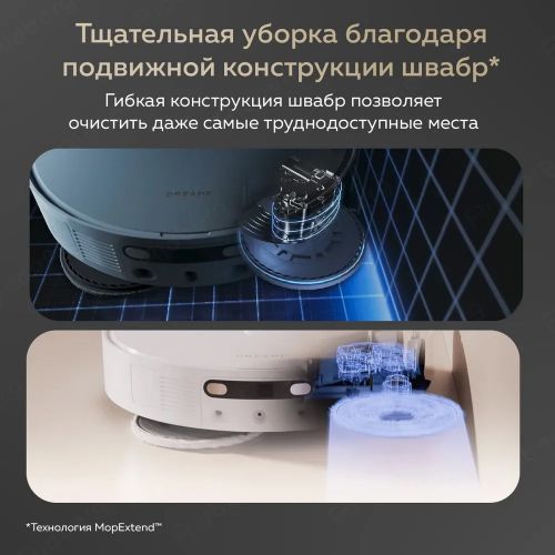 Версия MopExtend для L10s Ultra Gen2 предлагает улучшенную производительность благодаря выдвижной конструкции подушечек — они могут выдвигаться на 4 см, гарантируя более эффективную очистку всего за один проход. Пылесос оснащен датчиком определения ковров и системой подъема подушечек, которая позволит избежать их замачивания во время влажных уборок.