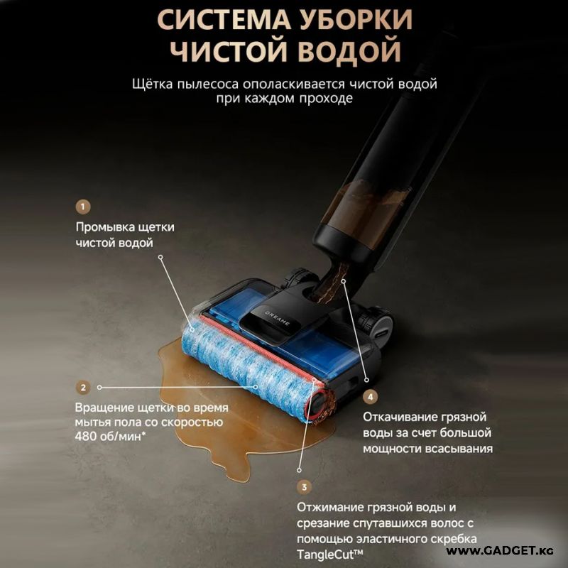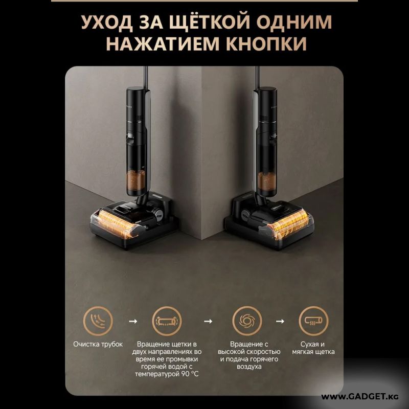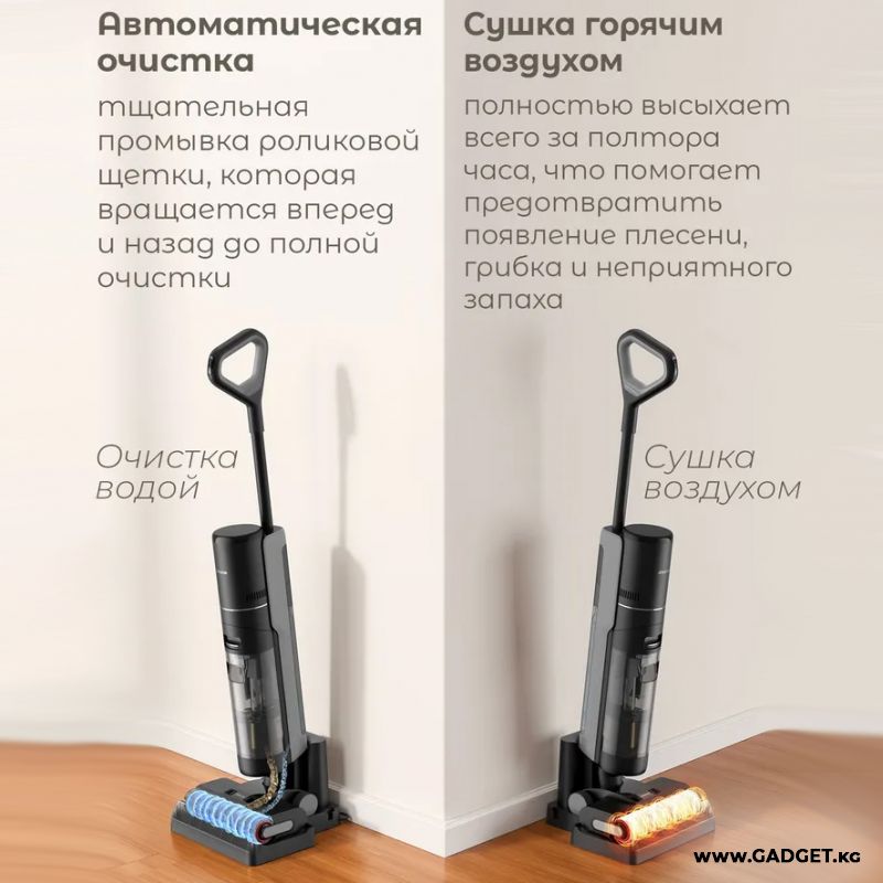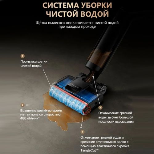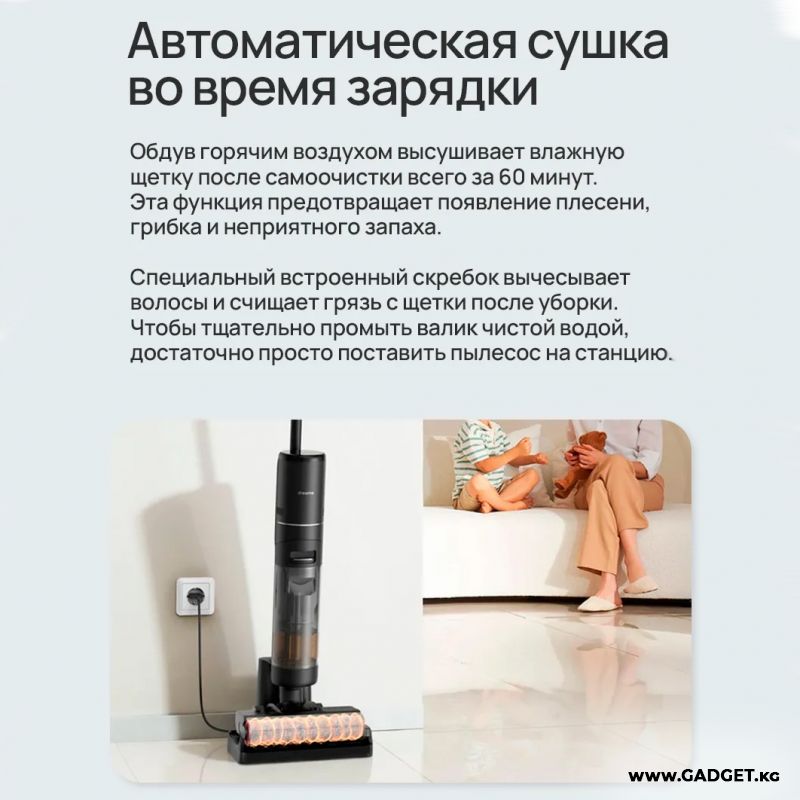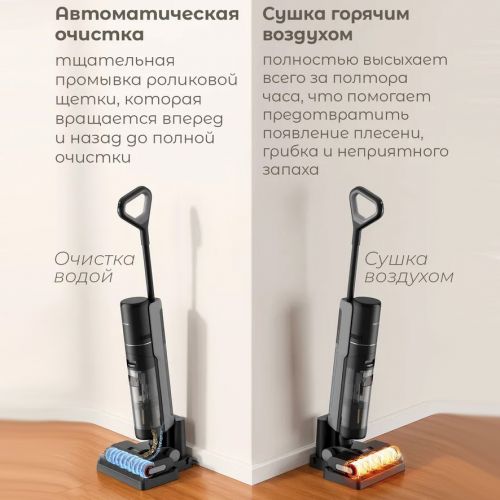 Dreame H12 Pro - пылесос с функцией самоочистки и сушки горячим воздухом. В зависимости от загрязнения пылесос автоматически регулирует мощность всасывания. Dreame H12 Pro соберет не только жидкость, но и разлитый суп, разбитое яйцо, или сок, а затем помоет и высушит свою щетку на станции.