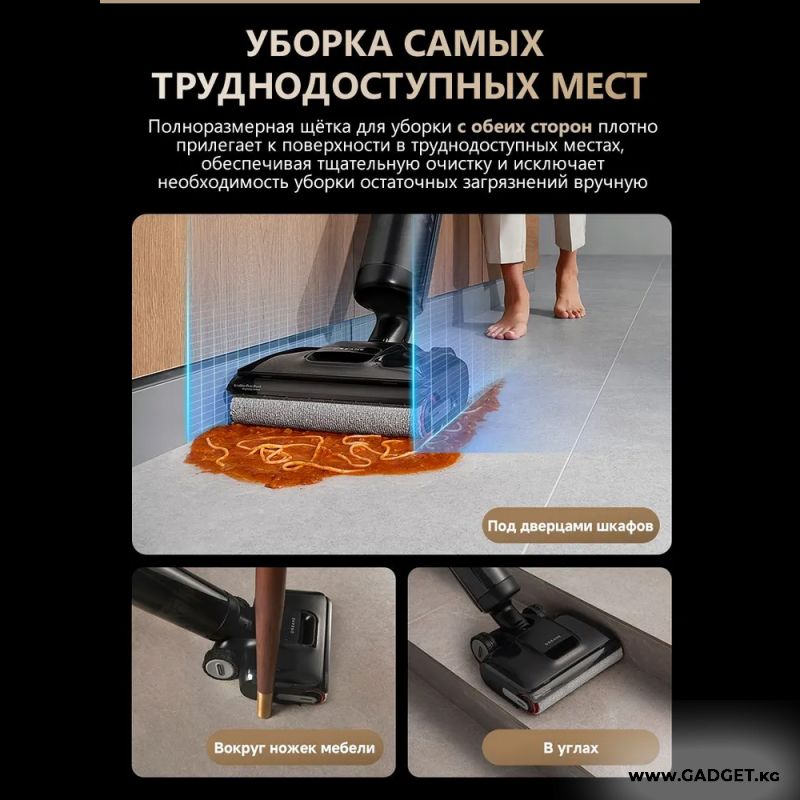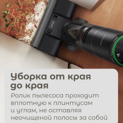Конструкция щетки позволяет убирать вдоль плинтусов и цоколей, не оставляя узкой полоски пыли, как это часто бывает у привычных моделей пылесосов, Даже самые труднодоступные места не останутся без внимания.