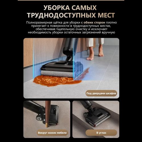 Мощное всасывание и эффективная влажная уборка вместе с легкостью расправляются с липкими пятнами, копотью и въевшейся грязью. Усовершенствованная система циркуляции воды обеспечивает комбинированную уборку — тщательные сухая и влажная уборка за один проход.