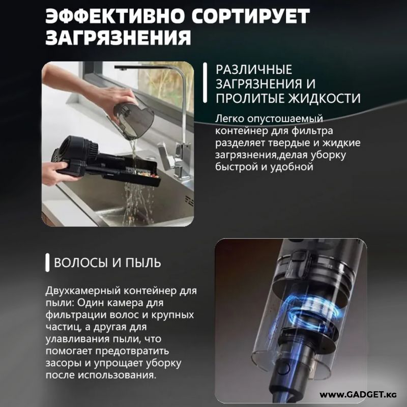 Благодаря двум функциям в одном устройстве - мойка пола и сухая уборка, вы справитесь с любой грязью легко и быстро. Ваш дом всегда будет сиять чистотой, а у вас появится больше времени для себя.