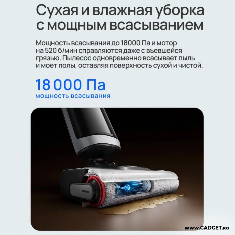 Сила всасывания 18 кПа и скорость вращения щетки 520 об/мин - это сочетание, которое обеспечивает максимальную эффективность уборки.