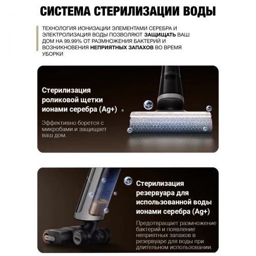 Технология ионизации элементами серебра позволяет H14 DUAL защищать ваш пол на 99,99% от размножения бактерий и неприятных запахов во время уборки.