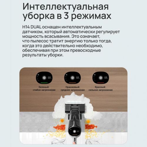 Dreame H14 Dual - это беспроводное интеллектуальное чистящее устройство, объединяющее пылесос, уборку, мытье и сушку пола, предоставляющее пользователям эффективный и удобный опыт уборки дома.
