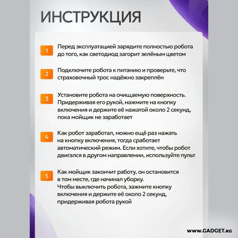 Робот очень прост в использовании - достаточно просто подключить его к источнику питания и запустить процесс мойки окон.