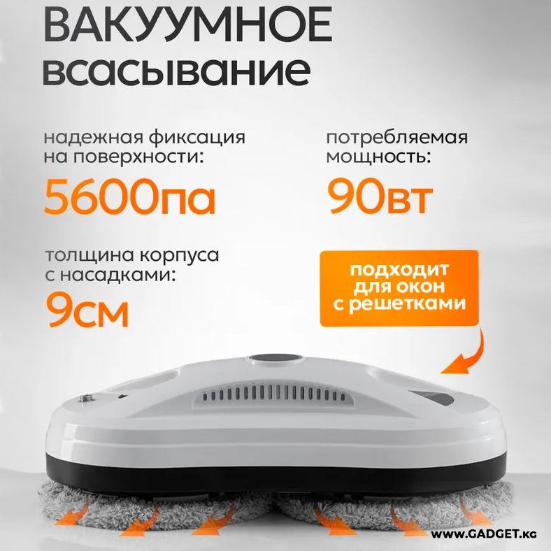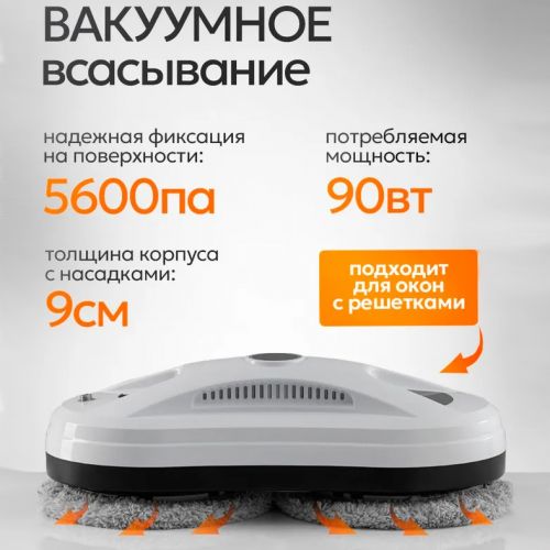 Мощное вакуумное всасывание - 5600Па. Мойщик окон робот будет надёжно зафиксирован на поверхности.
