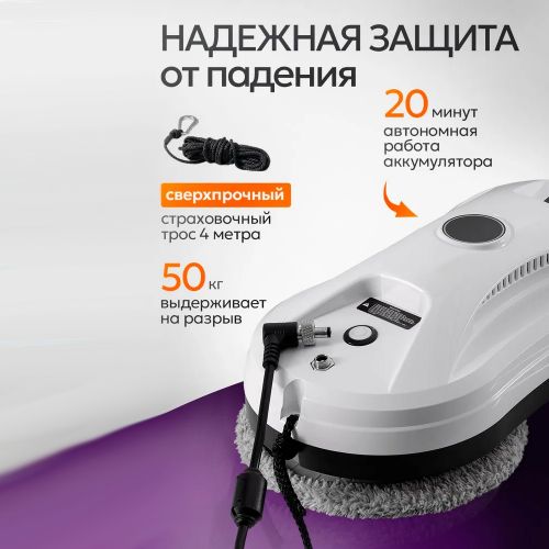 Управлять этим мойщиком окон очень просто: подключите его к электросети, закрепите шнур безопасности, и он автоматически прикрепится к поверхности, как только будет активирован. Он начнет уборку по зигзагообразной схеме со скоростью 1 кв. м каждые 2 минуты, чтобы ничего не упустить. В комплекте с роботом поставляется 4-метровый шнур питания и запасные батареи, поэтому он может работать до 20 минут даже при отключении электричества.