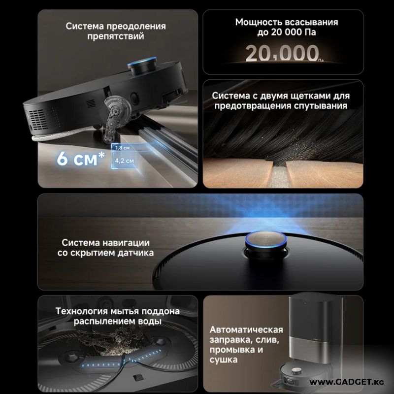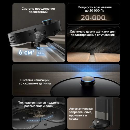 Благодаря двигателю TurboForce шестого поколения, поддерживающему скорость вращения до 90 000 об/мин, система VormaxTM может обеспечивать мощность всасывания 20 000 Па, что позволяет роботу-пылесосу X50 Ultra Complete убирать мусор даже из глубоких щелей в полу, включая обрывки бумаги, наполнитель для кошачьего туалета, пыль, волосы и многое другое. Низкий уровень шума во время работы подтвержден сертификатом. Робот-пылесос может обеспечивать высокую мощность всасывания, не нарушая покой в вашем доме, благодаря чему он идеально подходит для ежедневного использования.