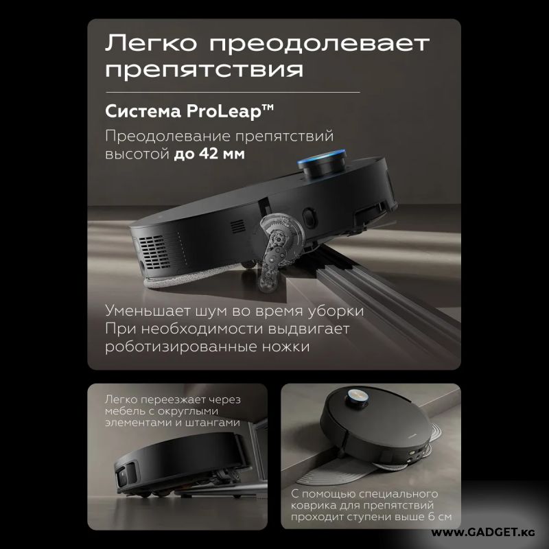 Система ProLeap™ позволяет роботу-пылесосу плавно преодолевать препятствия высотой до 6 см и уменьшает шум во время уборки. При необходимости пылесос выдвигает роботизированные ножки, легко преодолевая направляющие конструкции межкомнатных дверей, двухуровневые пороги и U-образную мебель без повреждений.