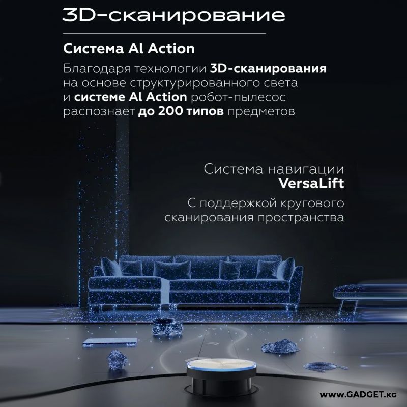Благодаря технологии 3D-сканирования на основе структурированного света и системе Al Action робот-пылесос X50 Ultra Complete может с впечатляющей точностью распознавать до 200 типов предметов, включая продукты жизнедеятельности домашних животных. Встроенная светодиодная подсветка облегчает навигацию для пылесоса X50 Ultra Complete, позволяя ему заблаговременно обнаруживать препятствия и помехи.
