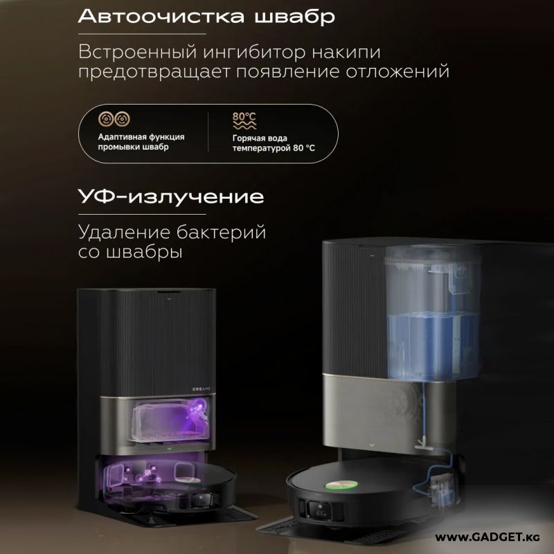 Наслаждайтесь безупречной чистотой полов благодаря системе автоматической очистки швабр. Горячая вода температурой 80°C удаляет стойкие загрязнения, масло и жир, благодаря чему швабры остаются свежими и всегда готовы к следующему сеансу уборки. Встроенный ингибитор накипи предотвращает появление отложений, чтобы продлить срок службы пылесоса и обеспечить его защиту от повреждений. Функция промывки швабр адаптирует процесс очистки с учетом условий окружающей среды для достижения