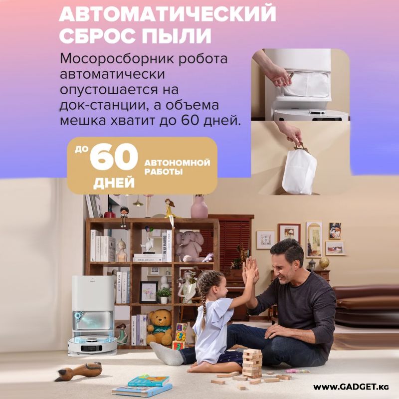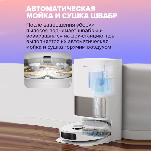 Робот-пылесос в котором реализован полный цикл самообслуживания. В процессе и после уборки робот самостоятельно сбрасывает мусор в базу, стирает и сушит на ней свои моющие насадки и заправляет от нее свой резервуар для воды. Камера с искусственным интеллектом позволяет распознавать даже небольшие объекты ниже уровня лидара, но самое интересное - это функция управления роботом от первого лица. Флагман своей линейки получил максимально эффективный модуль влажной уборки: вращающиеся диски отлично оттирают от пола даже присохшие пятна. В момент заезда на ковер - пылесос поднимает насадки и увеличивает мощность всасывания, а съезжая на твердый пол - снова прижимает их к полу, подает воду, продолжая пылесосить с мойкой. Также модель демонстрирует рекордную на момент выхода мощность всасывания - 5300 Pa. За построение точных карт отвечает LiDAR нового поколения и 3D датчики на бампере. Приложение порадует Вас полным спектром функций: управление от первого лица, покомнатное зонирование, виртуальные ограничители, запоминание нескольких этажей, поддержка голосовых ассистентов, и многое другое для понятного и интересного управления.