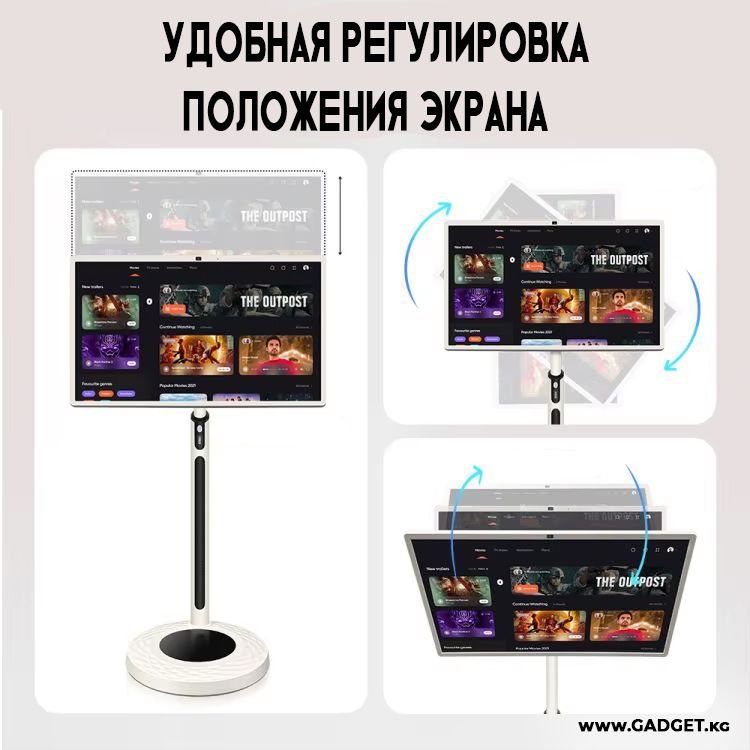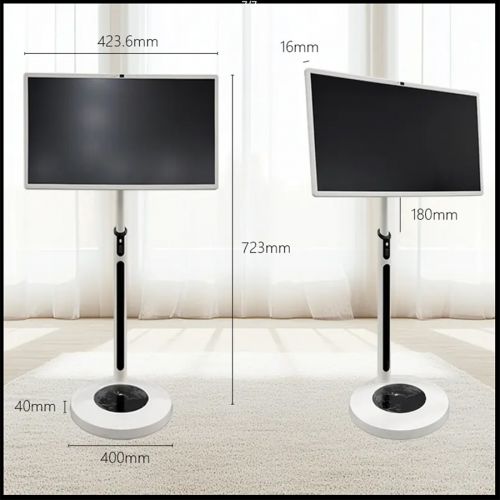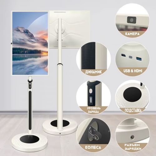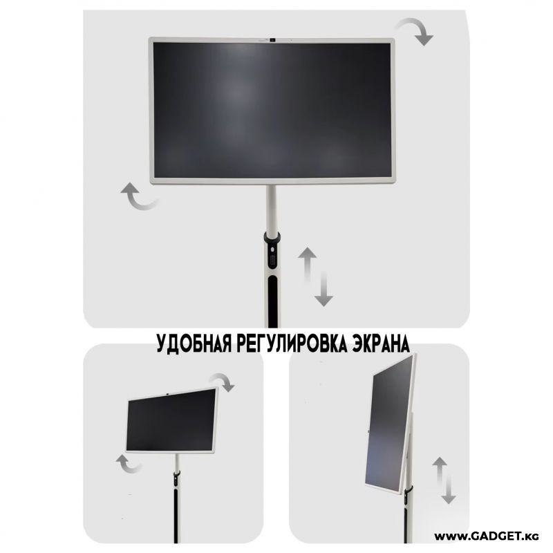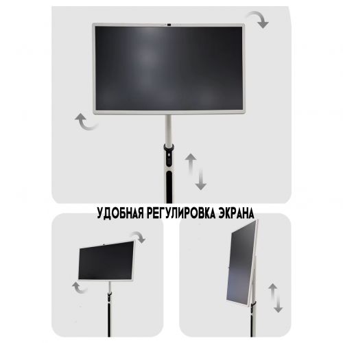 Благодаря регулируемой по высоте ножке, смарт-дисплей можно установить на полу в любом удобном месте. Ножка имеет подставку на колесиках, что позволяет без труда передвигать его по полу. Это делает устройство идеальным выбором для тех, кто часто меняет место работы или хочет иметь возможность легко перемещать дисплей в зависимости от потребностей.
