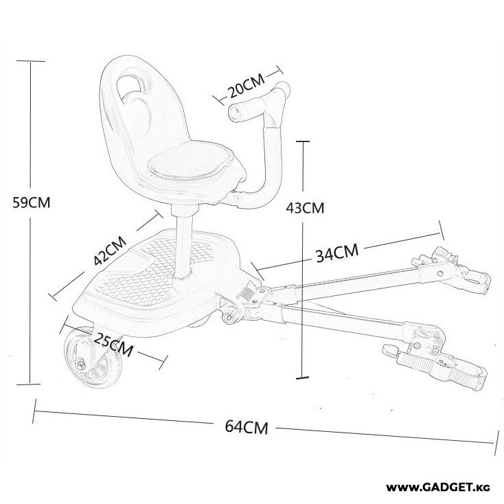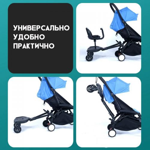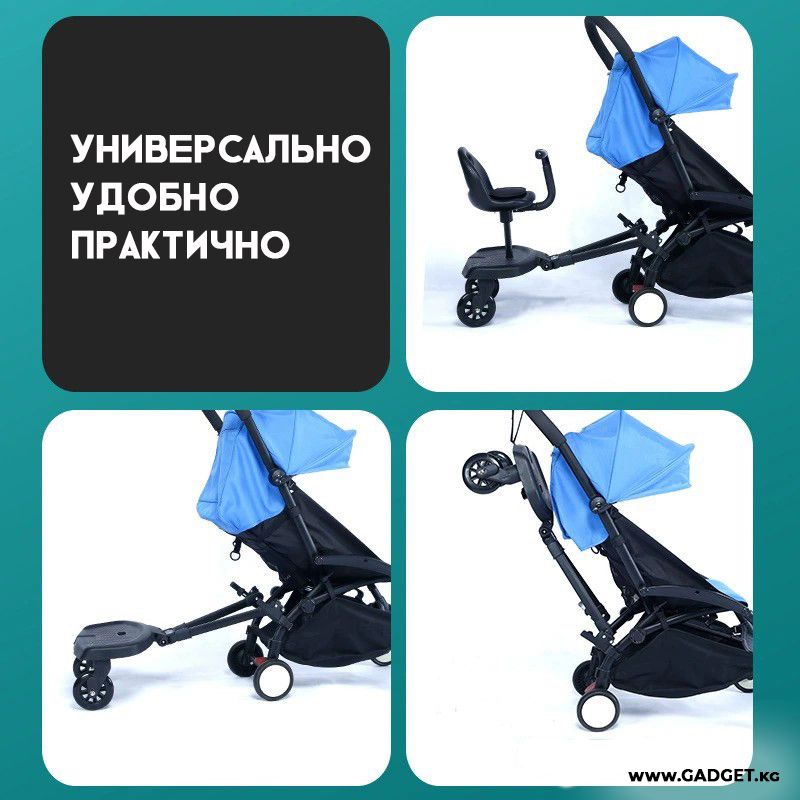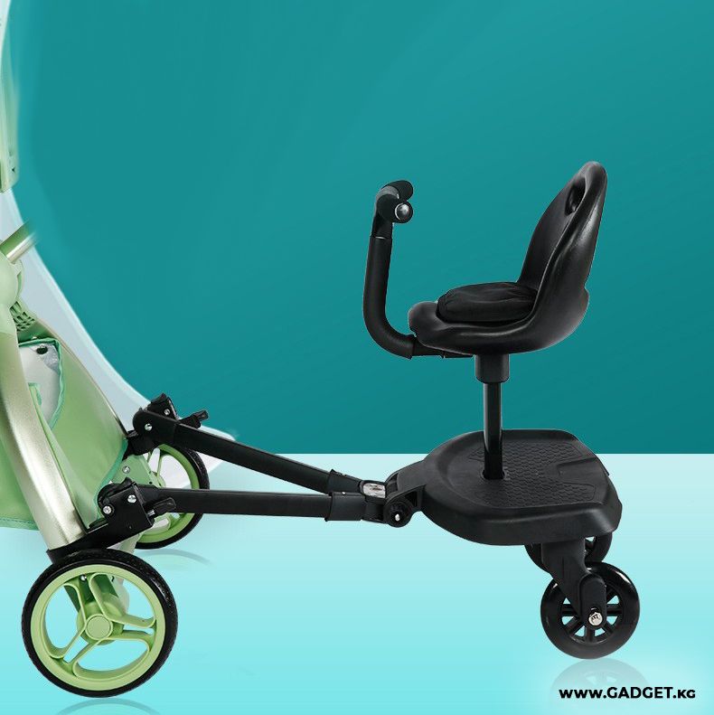 Подножка к коляске для старшего ребенка является крайне удобной на прогулке с двумя детьми. Сидение, которым оснащена данная подножка, позволит ребенку максимально отдыхать при длительной поездке. При желании ребенок может ехать на коляске и стоя. Подножка очень легко крепится за раму любой коляски.