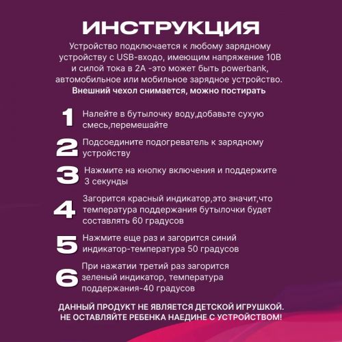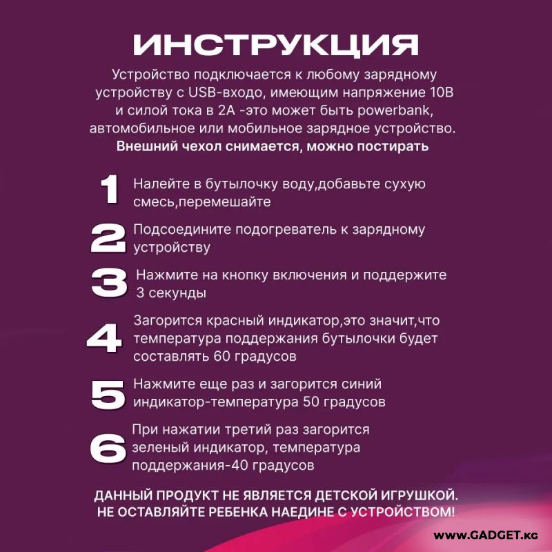 Представляем вам USB подогреватель для детских бутылочек — незаменимый помощник для заботливых родителей! Этот компактный и удобный прибор обеспечит вам и вашему малышу комфортное и быстрое подогревание бутылочек до нужной температуры.