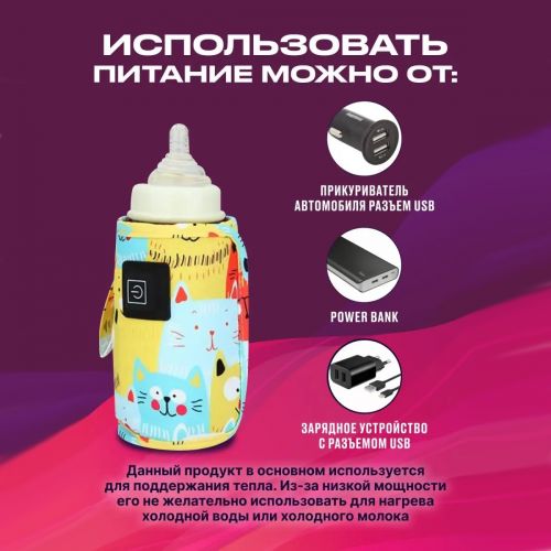 Нагреватель для бутылочек работает по принципу термоса для детского питания и подходит для бутылочек диаметром от 7-10 см (размер регулируется). Подогреватель для бутылочек usb позволяет равномерно подогревать детское питание, воду или смеси до нужной температуры и автоматически поддерживать ее определенное время.