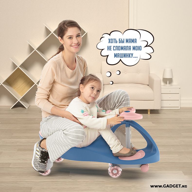 Чудо машинка-каталка, толокар, пушкар бибикар движется без педалей, без аккумулятора, без мотора! Машинка-каталка едет за счет вращения руля вправо и влево. Ребенка не нужно катать, он едет сам. По скорости пушкар не уступает современным детским электромобилям.