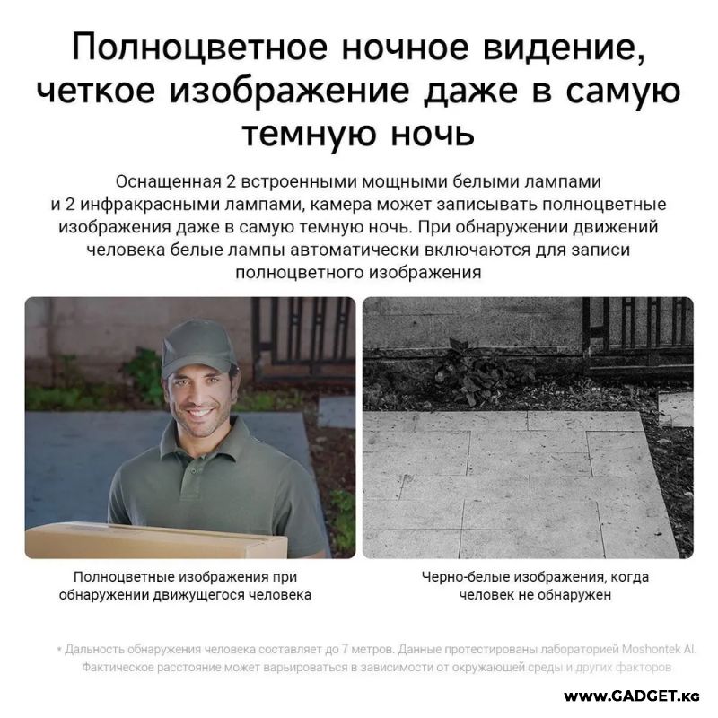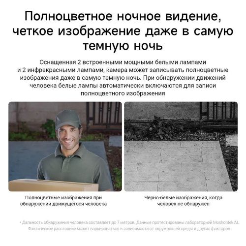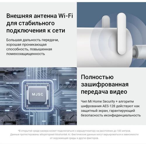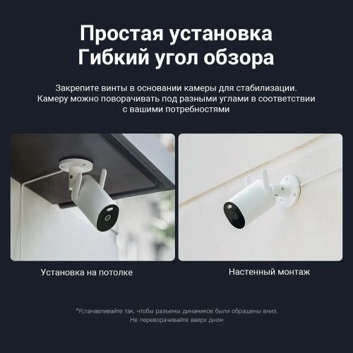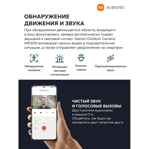 Камера уличного наблюдения Mi Outdoor Camera AW300 обеспечит эффективное наблюдение и охрану вашей территории круглые сутки. Камера снимает четкие и детализированные видео в формате 2К, полноцветные светодиоды позволяют получить цветное видео даже в условиях полной темноты. Зона фокусировки гарантирует интеллектуальное обнаружение движения без ложных срабатываний. Благодаря двусторонней голосовой связи вы сможете контактировать с посетителями дистанционно. А защита от воды и пыли позволит камере работать даже в сложных погодных условиях.