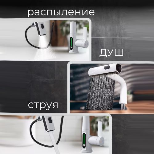 - Цифровой дисплей: На дисплее отображается текущая температура воды, что позволяет контролировать процесс смешивания горячей и холодной воды. Вы всегда будете знать, какая температура у вас сейчас.