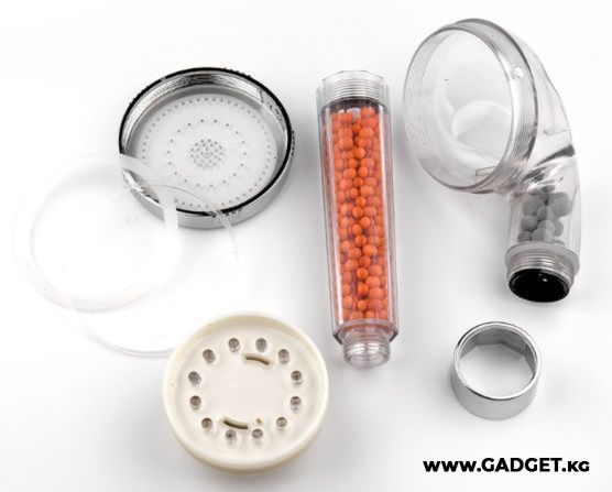 2. Смягчает воду и задерживает в себе грязь (в шариках, которые можно промывать разобрав лейку)