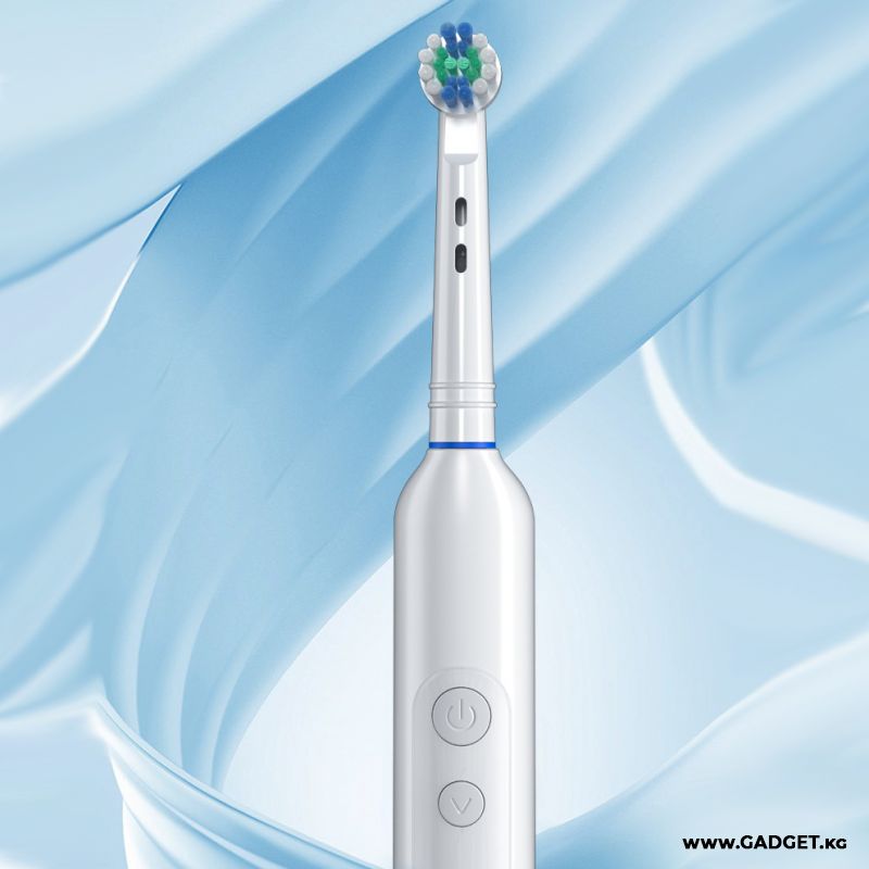 Круглая форма насадки обеспечивает удаление бактерий и налета с самых труднодоступных мест в полости рта. Функционирует устройство от аккумулятора. Время автономной работы – 20 минут.