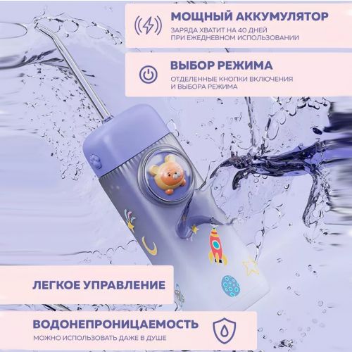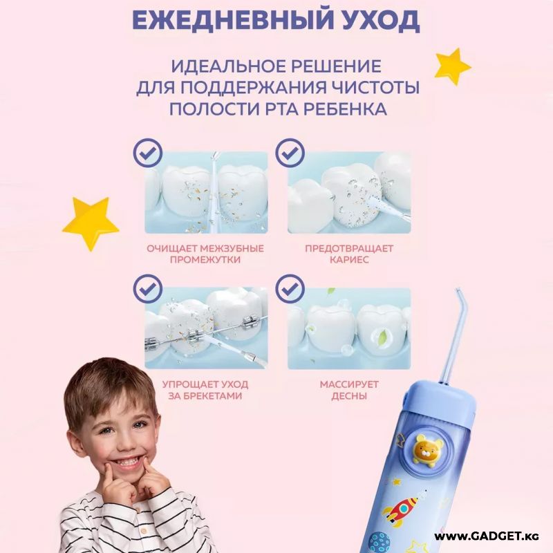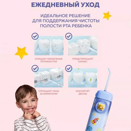 Специально разработанный детский ирригатор для полости рта — это идеальный подарок для вашего ребенка. Он станет полезным и приятным сюрпризом на такие праздники, как 8-е марта, день рождения или Новый год. Ирригатор безопасен и удобен в использовании, а благодаря мягким и средним настройкам давления подходит даже для самых маленьких, начиная с новорожденных и до детей старшего возраста. Ирригатор подойдет для зубов малышам.