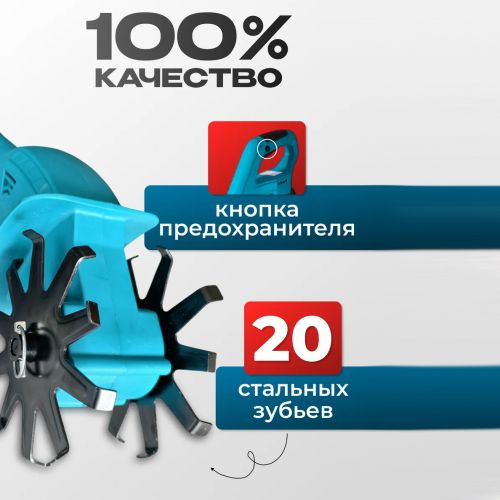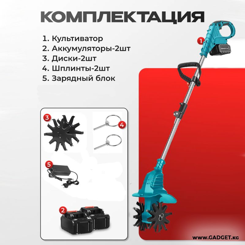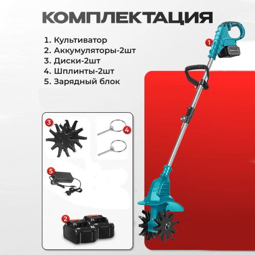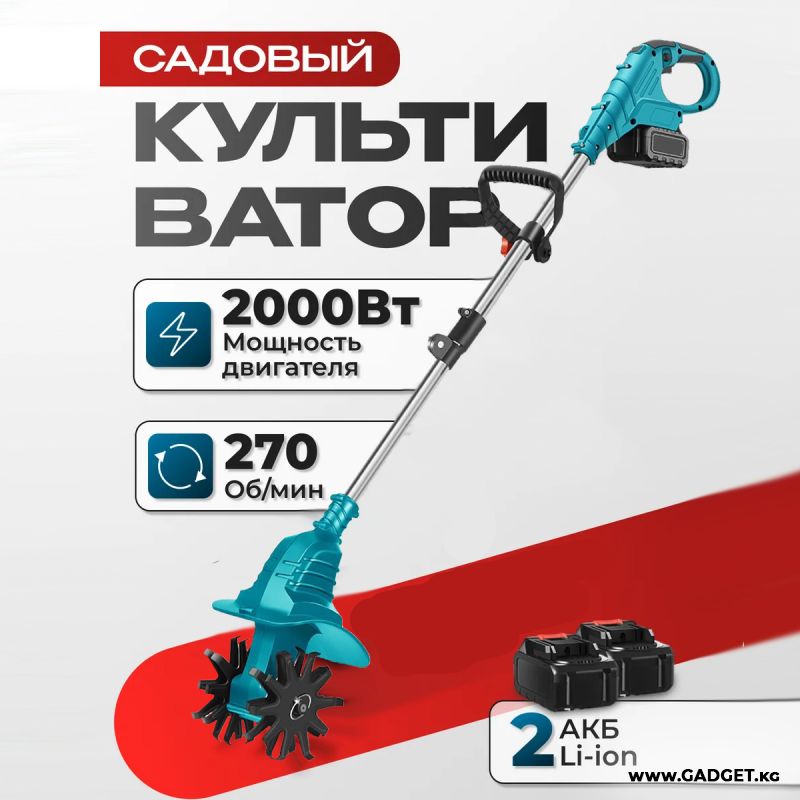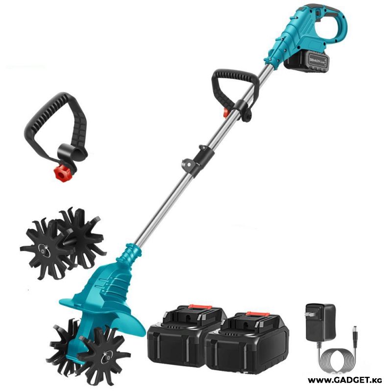Компактный и мощный аккумуляторный мини культиватор для грядок — незаменимый помощник для тех, кто ценит комфорт и эффективность в садовых работах. Этот электротяпка-рыхлитель создан для лёгкой ручной вспашки земли на огороде, клумбах и грядках. Благодаря работе от аккумулятора, устройство не требует подключения к электросети, а два аккумулятора в комплекте обеспечивают длительное время автономной работы.