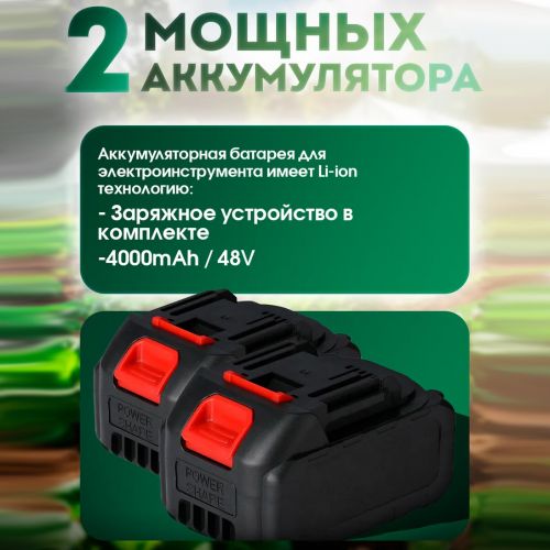 Работает ручной аккумуляторный культиватор от аккумуляторной батареи мощностью 48В MAX. Светодиодный индикатор заряда позволит отслеживать состояние батареи. Полного заряда хватит до 30 минут интенсивной работы.